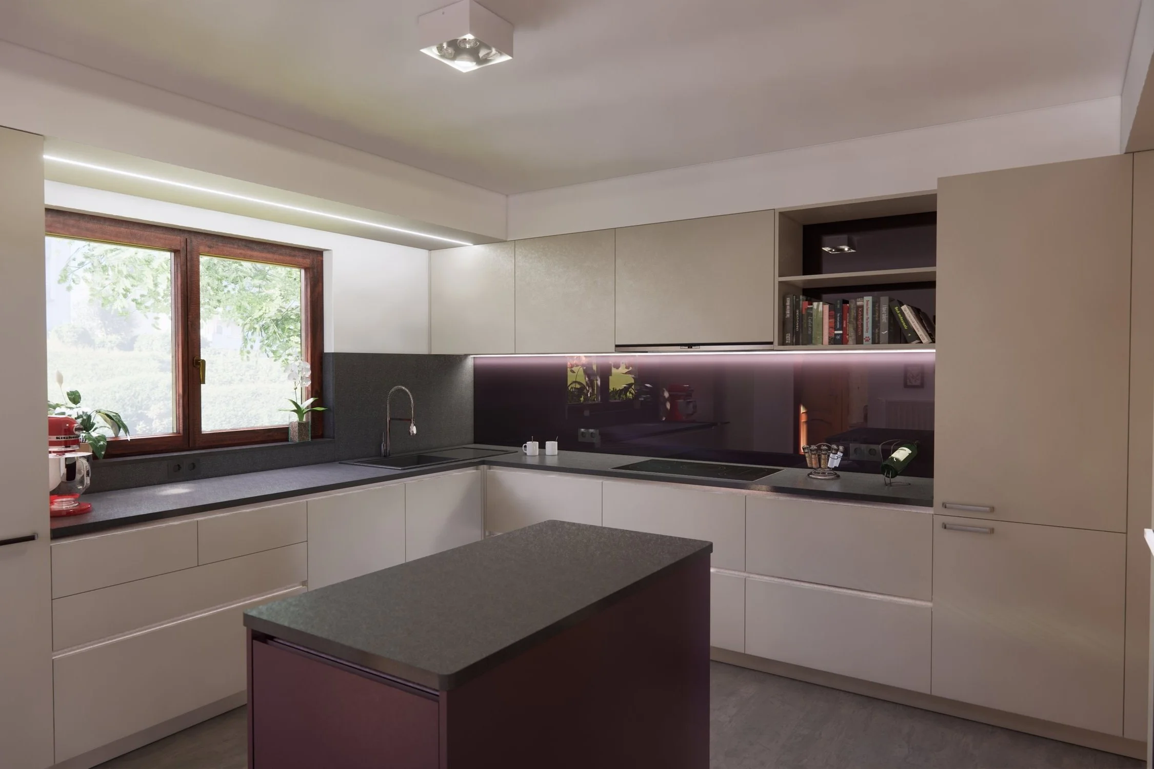 Küche Arbeitsflächen Nero Assoluto, GlasrückwandDeckenverkleidung mit integrierter LED Beleuchtung Projekte